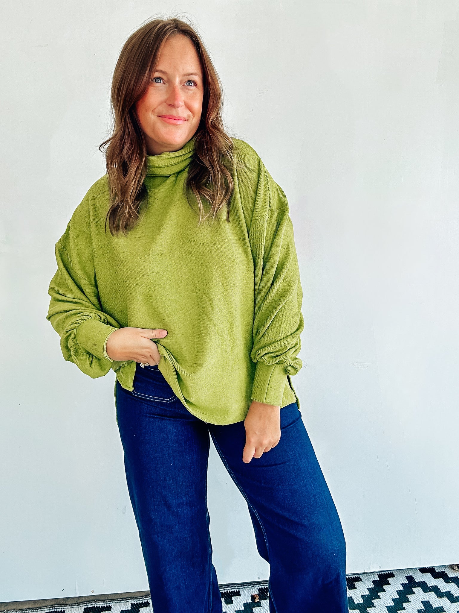 Olive Oversized Mock Neck Top