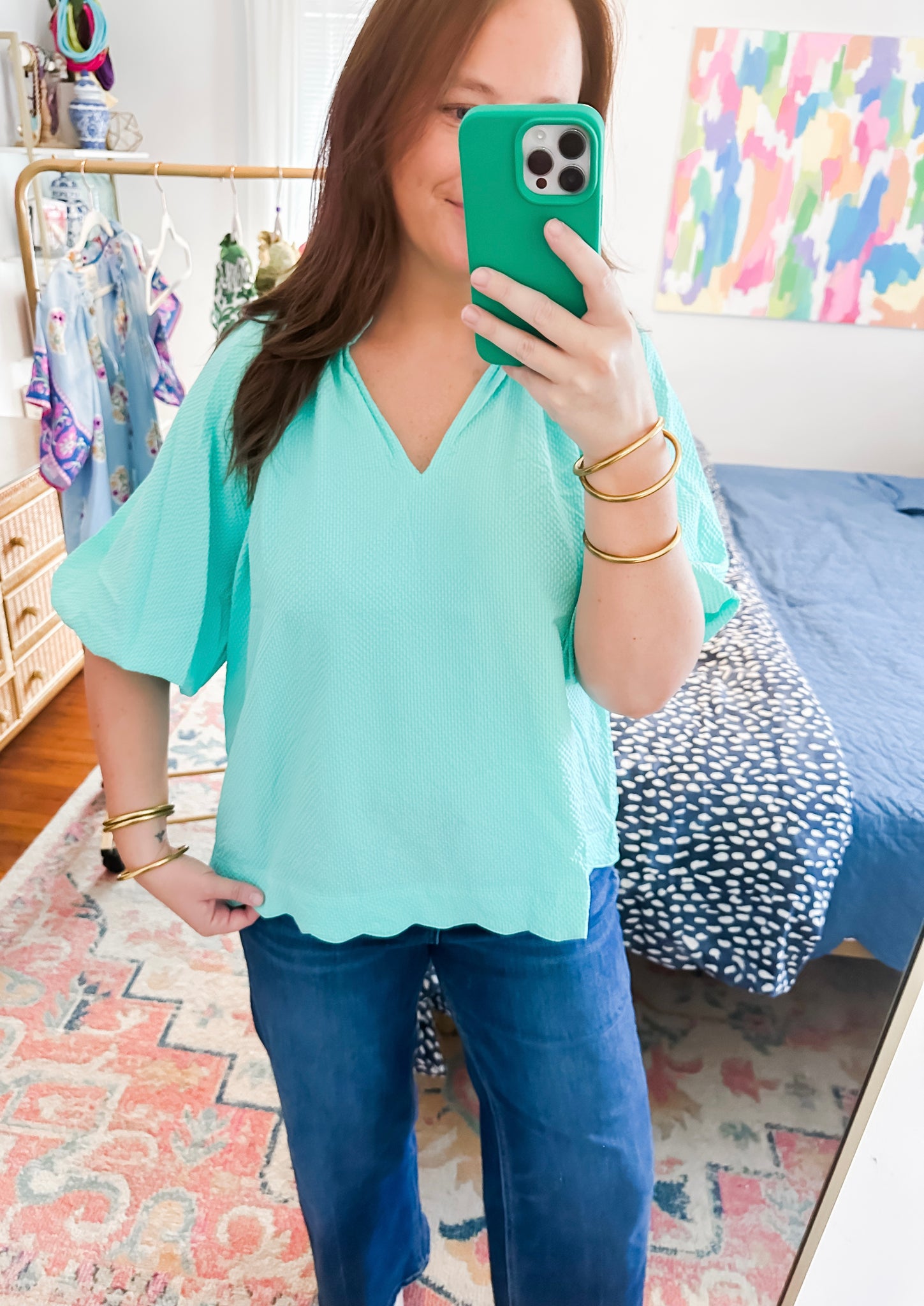 Mint Bubble Sleeve Top
