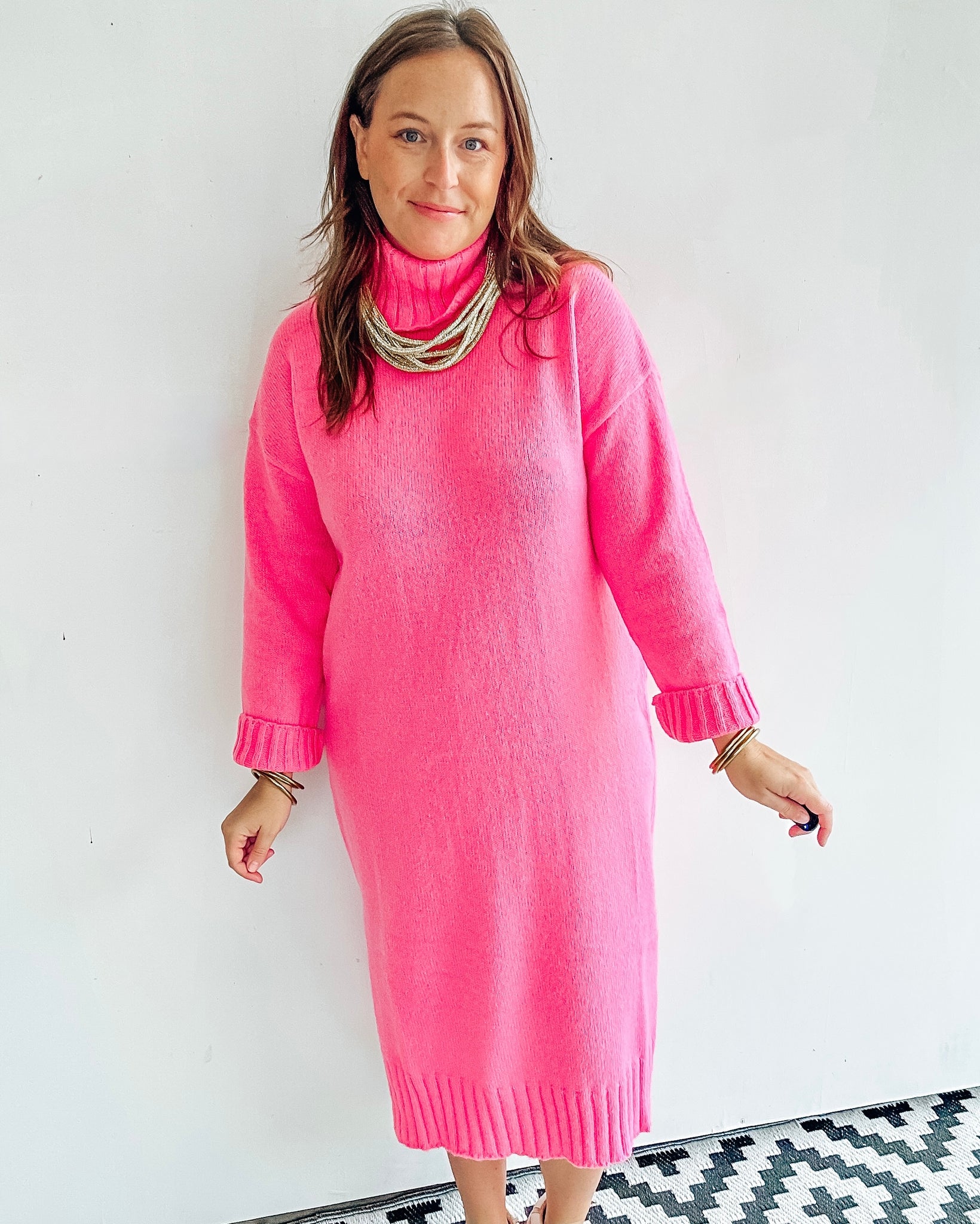 Pink midi length sweater dress