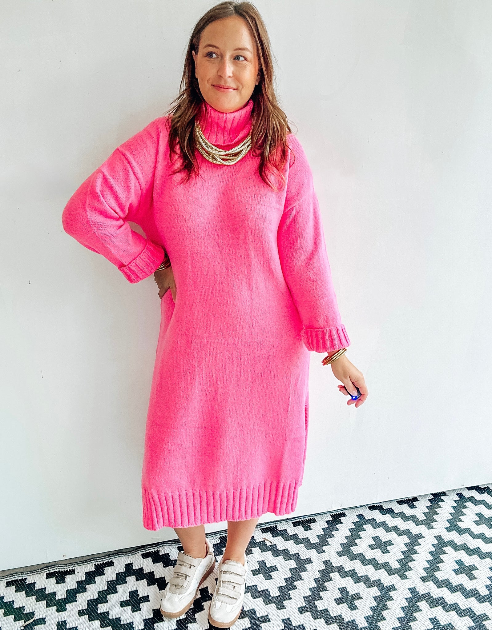 Pink Midi Sweater Dress
